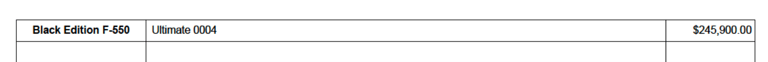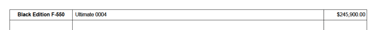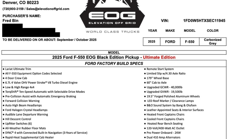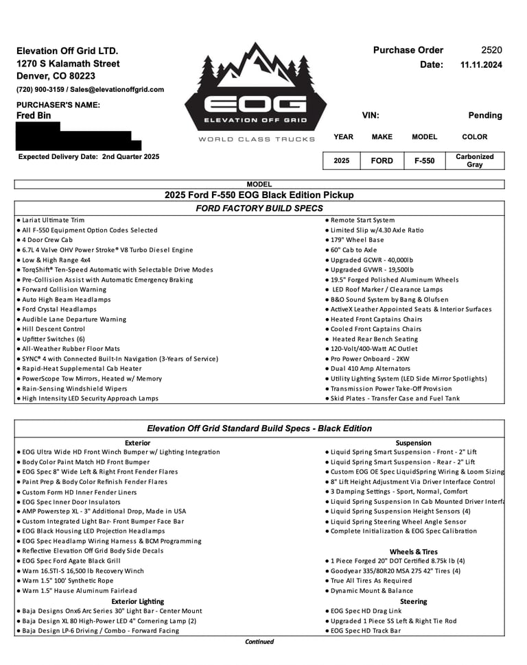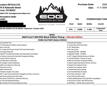 Here's the initial build sheet for EOG's standard F-550 Black Edition. The price is $209,900 before any options.